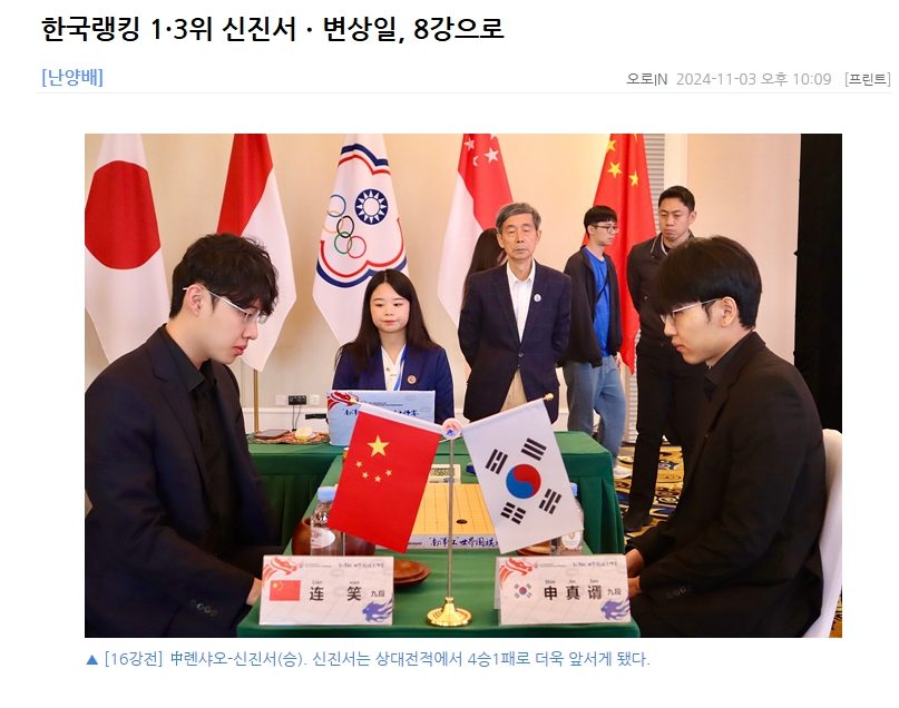 한국에서는 신진서, 변상일, 신민준 9단이 승리했지만 박정환, 원성진,최정 9단이 뼈아픈 패배 했다.