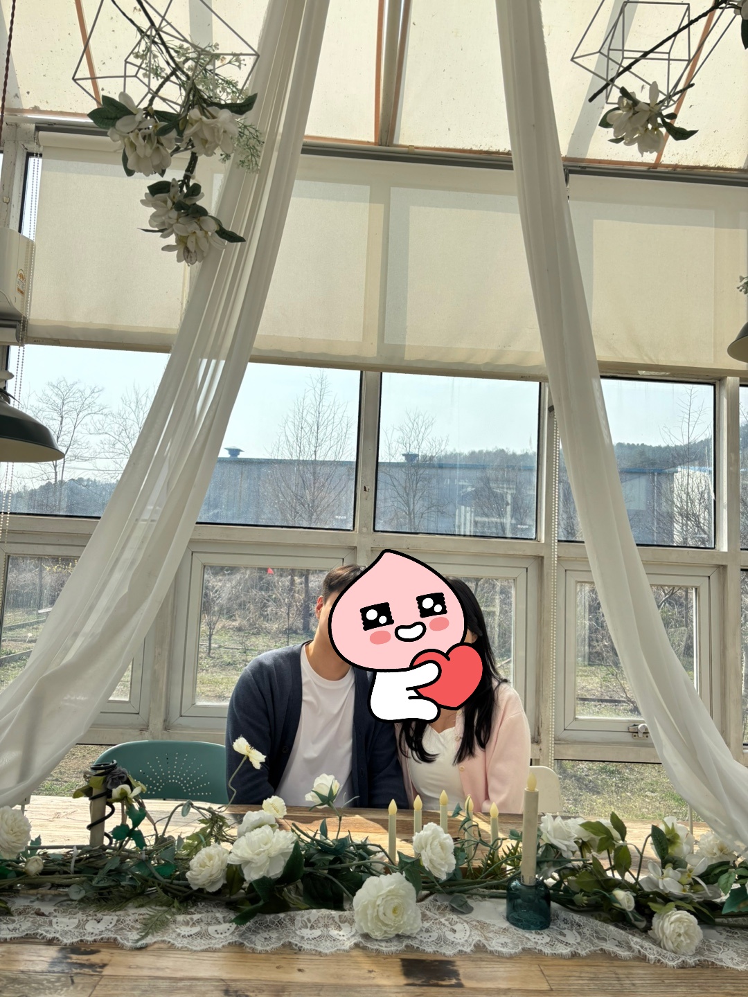 우리는 운 좋게 사장님이 저기서 커플 사진 찍어주셨다 ^.^ 요기는 사장님이 돌아다니시며 포토존이라며 사진 찍어주심 크크