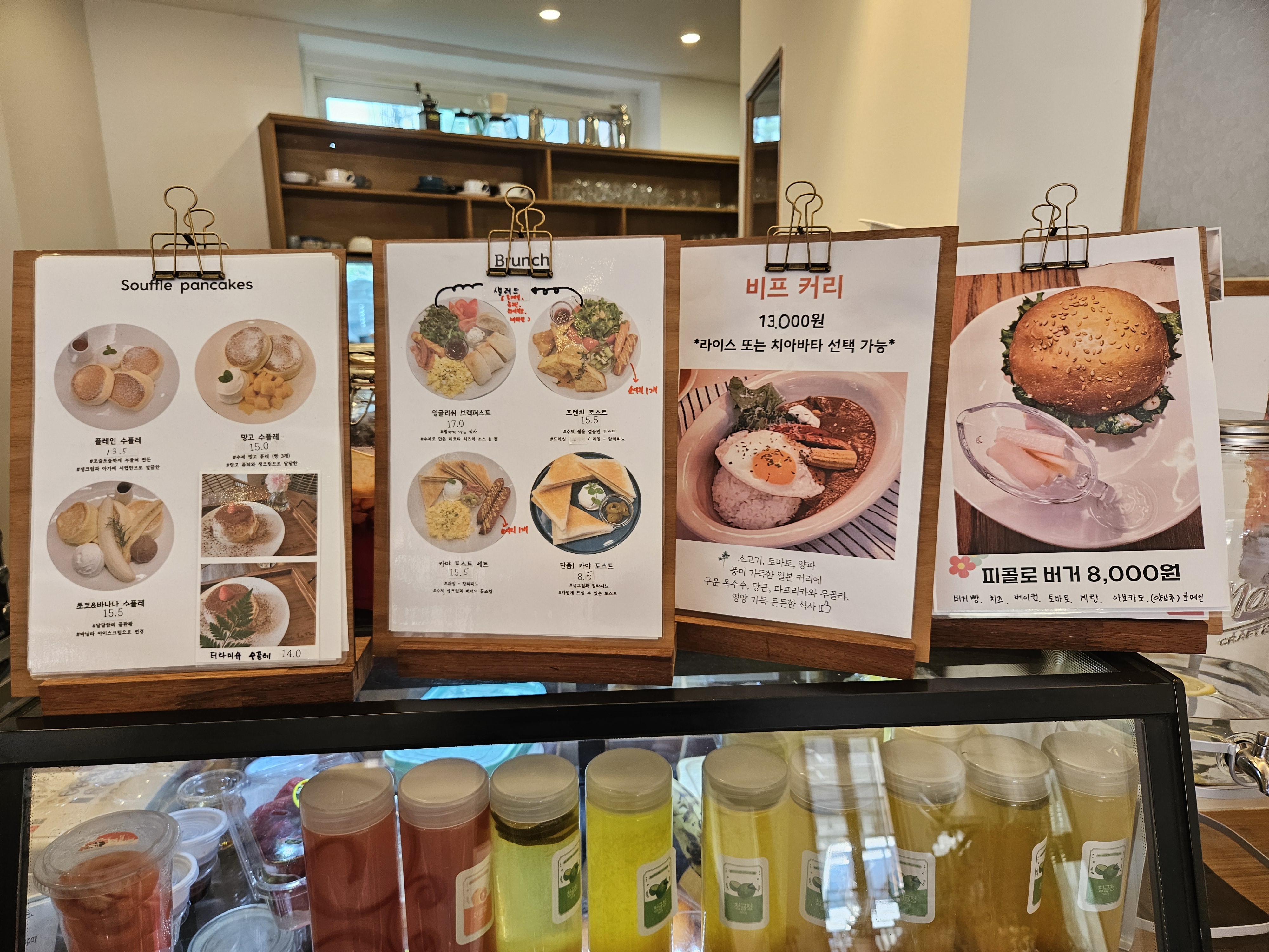 카페메뉴예요 ~ 신기한 게 카레 밥도 메뉴에 있더라고요 ㅎㅎㅎ 바닐라라떼랑 토마토주스 주문!!